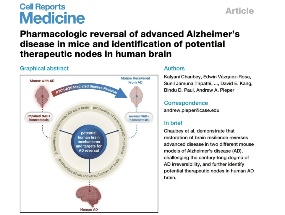 长期以来被认为不可逆的阿尔茨海默病(Alzheimer’s disease, AD)能否治愈? 2025年12月发表在Cell子刊 Cell Reports Medicine 的研究《Pharmacologic reversal of advanced Alzheimer’s disease in mice and identification of potential therapeutic nodes in human brain》提出了新的答案:在小鼠模型中,恢复大脑能量代谢平衡不仅“延缓病情”,更