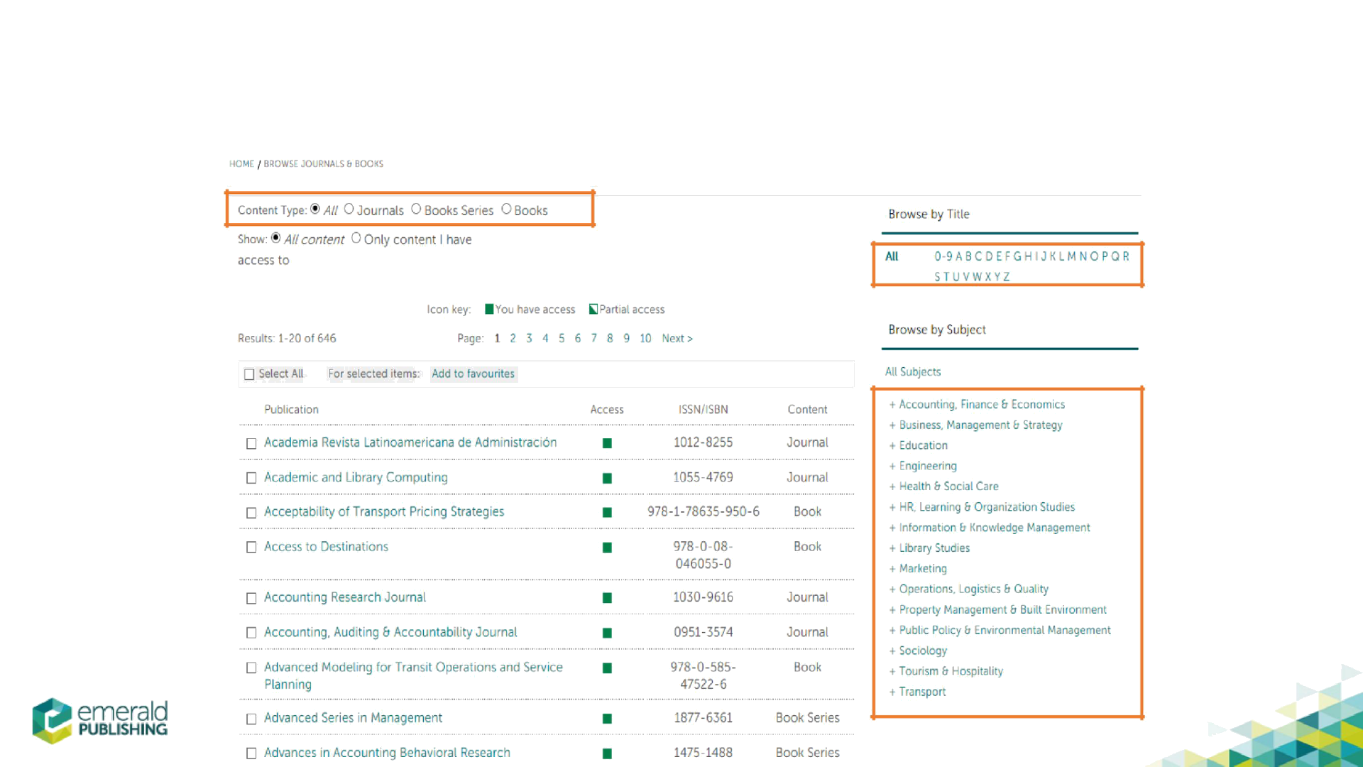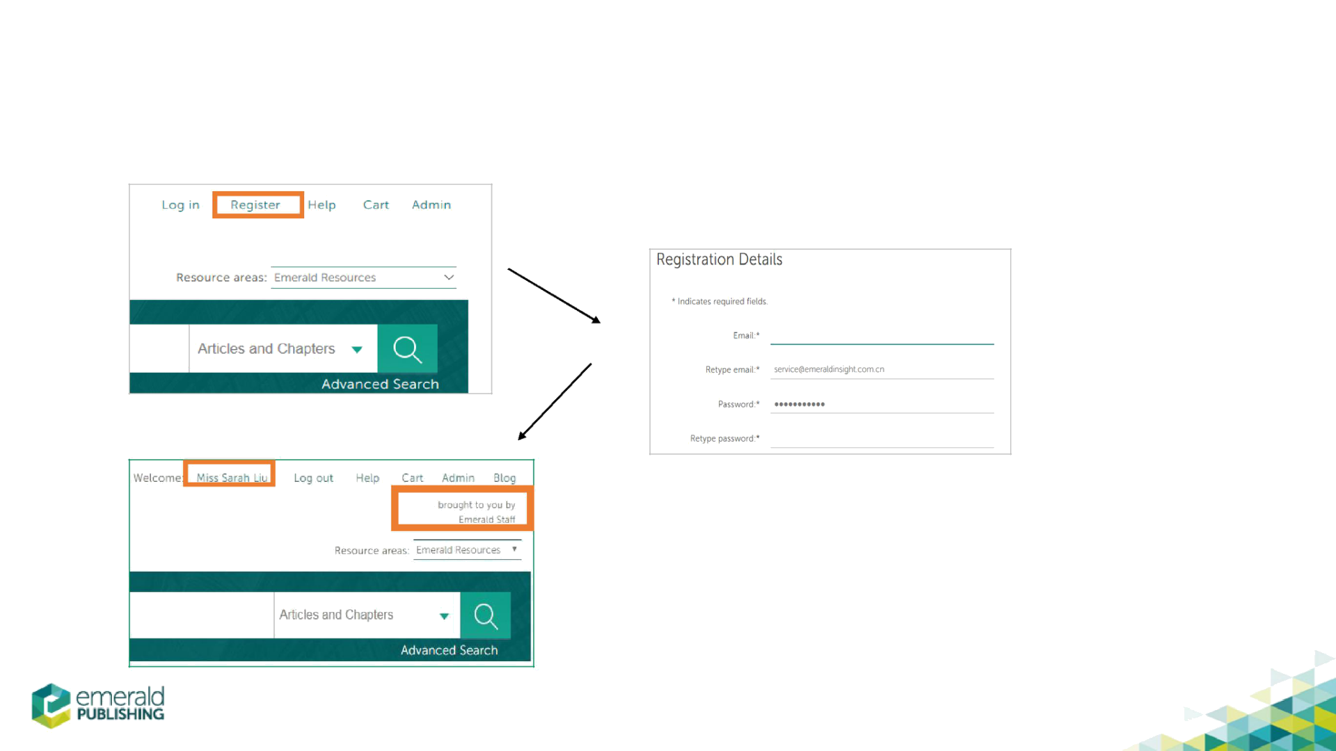 平台支持用户在机构IP范围外访问机构订购的Emerald资源。请用户信息(如下)发送至service@emeraldinsight.com.cn